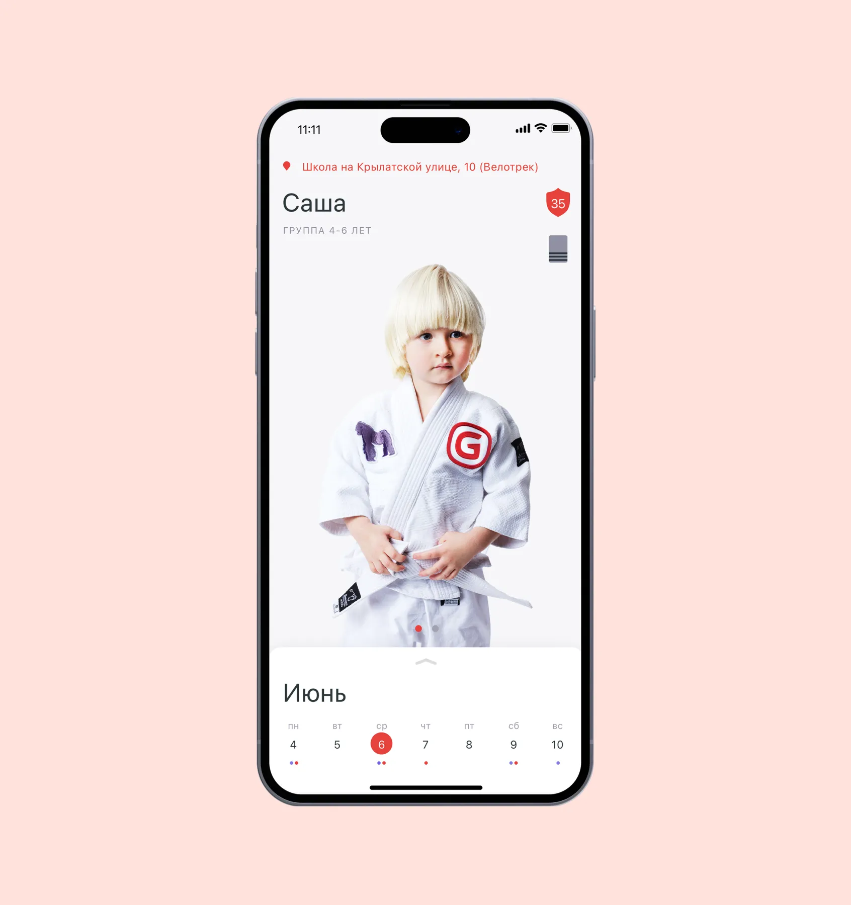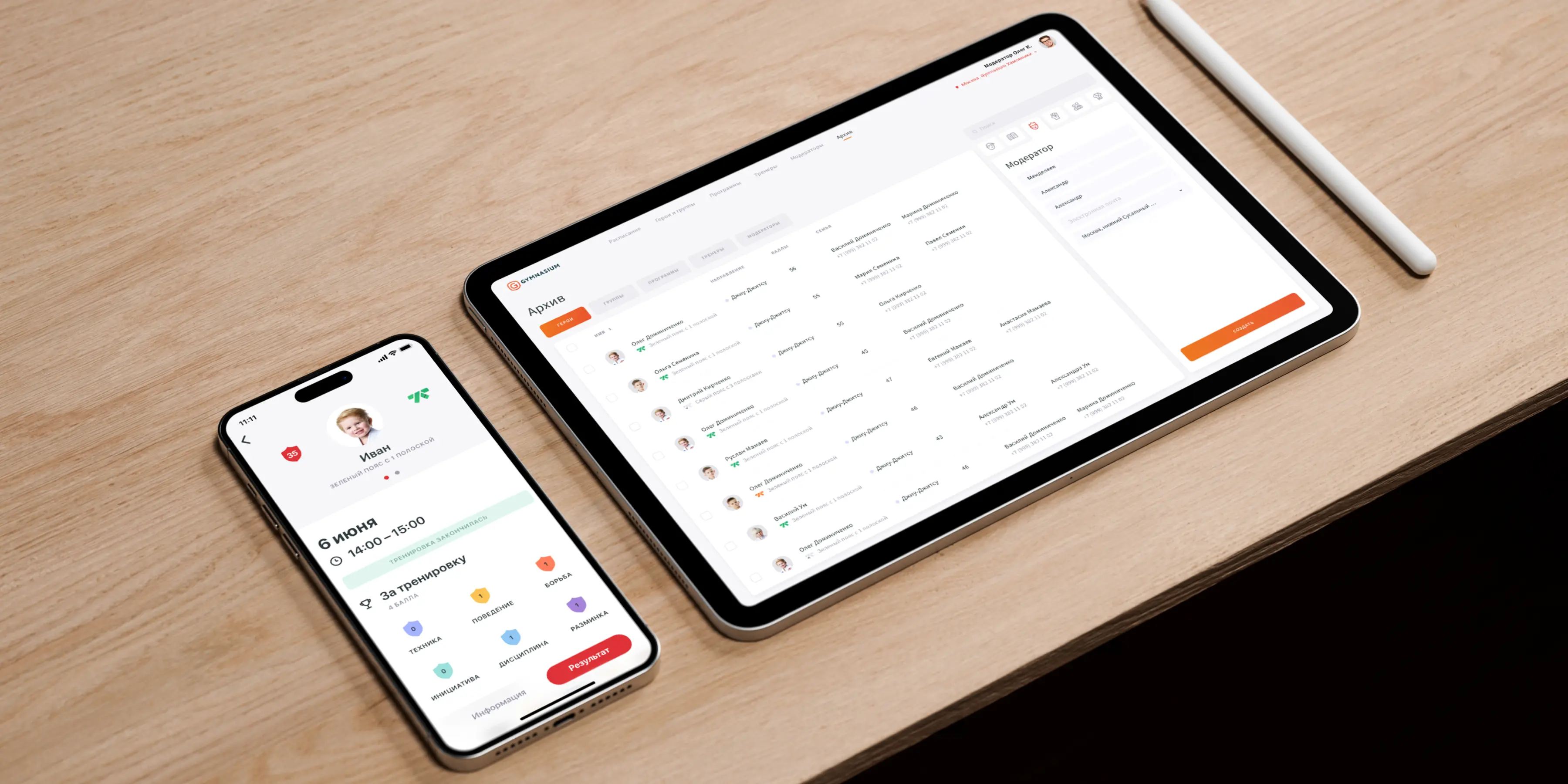 Реализован личный кабинет с расписанием занятий, всей информацией о достижениях ребенка и оценках, которые он получил на тренировке от наставника.